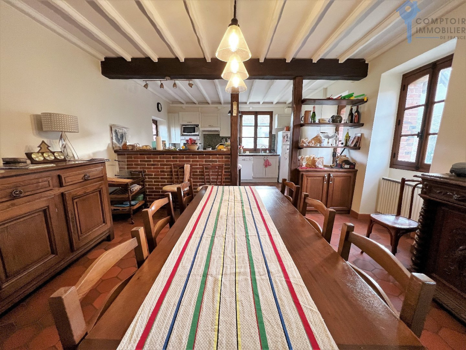 Comptoir Immobilier de France - Auneau - vous propose à la vente cette magnifique longère de 118 m² habitables située dans un village calme et sans vis à vis. Idéalement située pour vos week-end à la campagne ou pour votre résidence principale. Cette maison de caractère comprend : Au rez de chaussée 'une entrée, un salon/séjour donnant sur une cuisine ouverte équipée et aménagée, une chambre, une salle de bain avec baignoire et douche ainsi qu'un wc séparé. Au 1er étage : un grand palier dessert trois chambres dont une en enfilade et un wc avec lavabo Côté extérieur un terrain de 1230 m² clos et arboré avec une grange de 50 m², un garage avec grenier ainsi qu'une cave voutée. A environ 15 minutes d'Auneau et 20 minutes de Chartres Laissez vous séduire par cette magnifique maison pleine de cachet Honoraires charge vendeur CIF AUNEAU - Arnaud HENRY - O6 71 45 8O 93 - EI Agent commercial RSAC N° 915 333 751 - Ville du greffe : CHARTRES