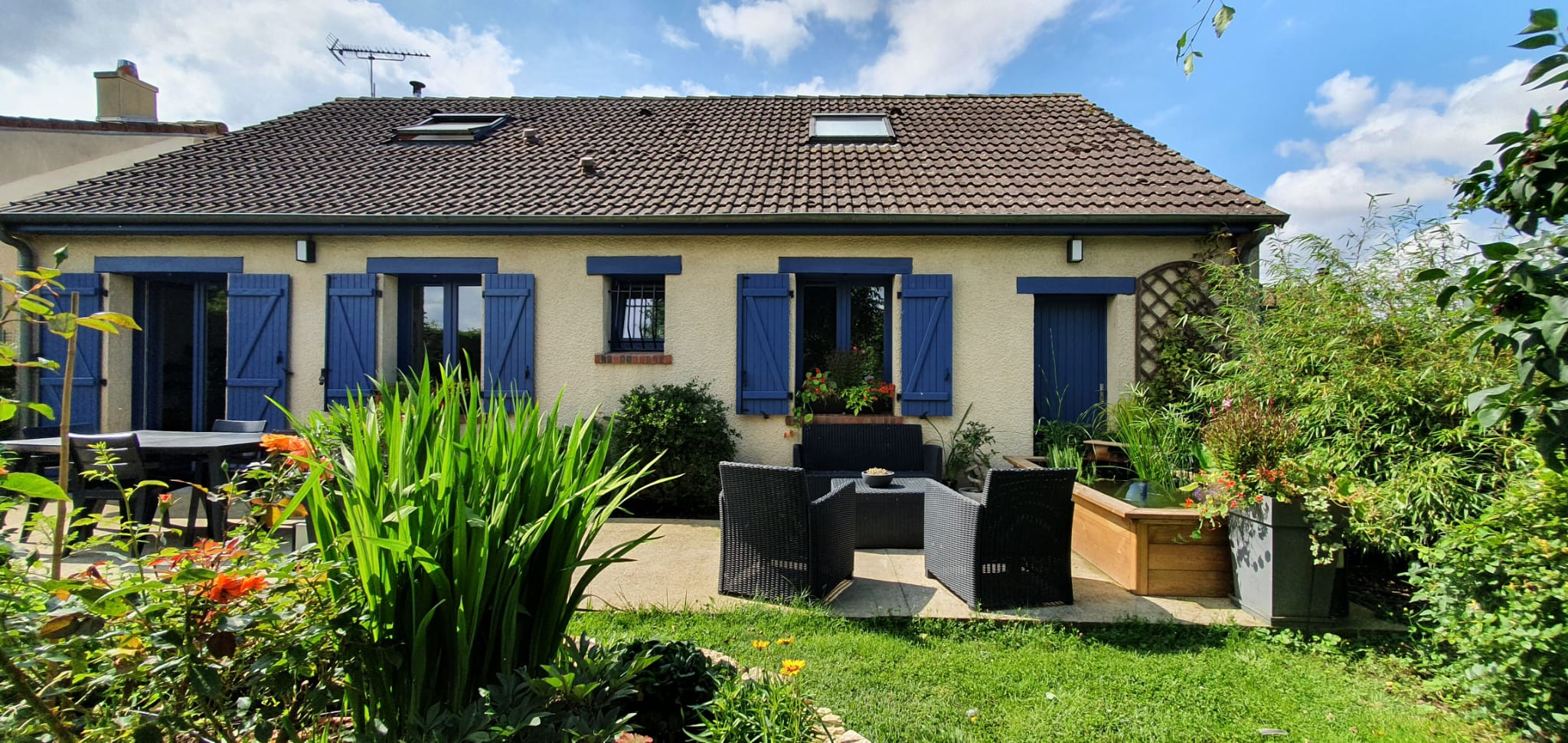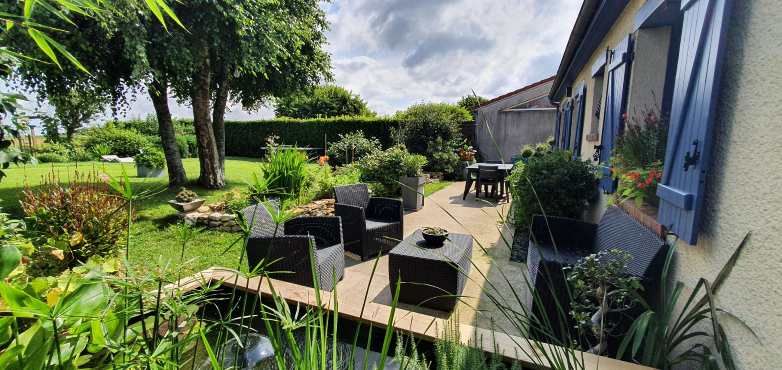 Côté extérieur vous profiterez d'un grand terrain d'environ 792 m² avec terrasse et bassin à poisson.