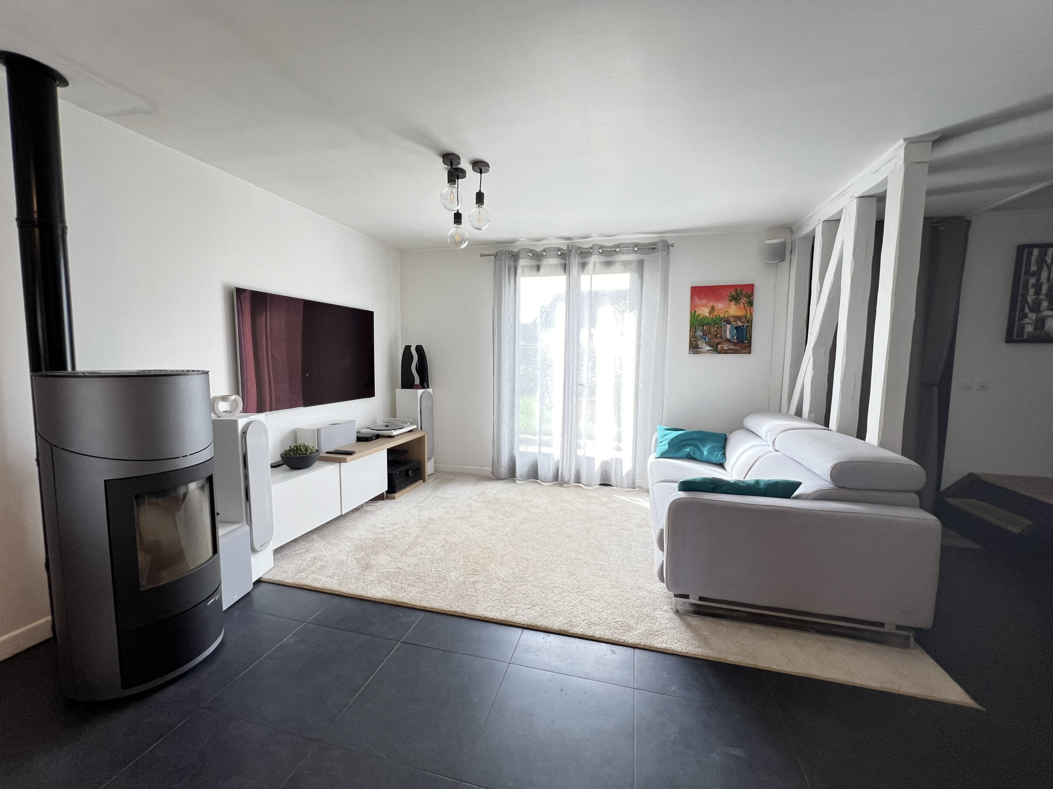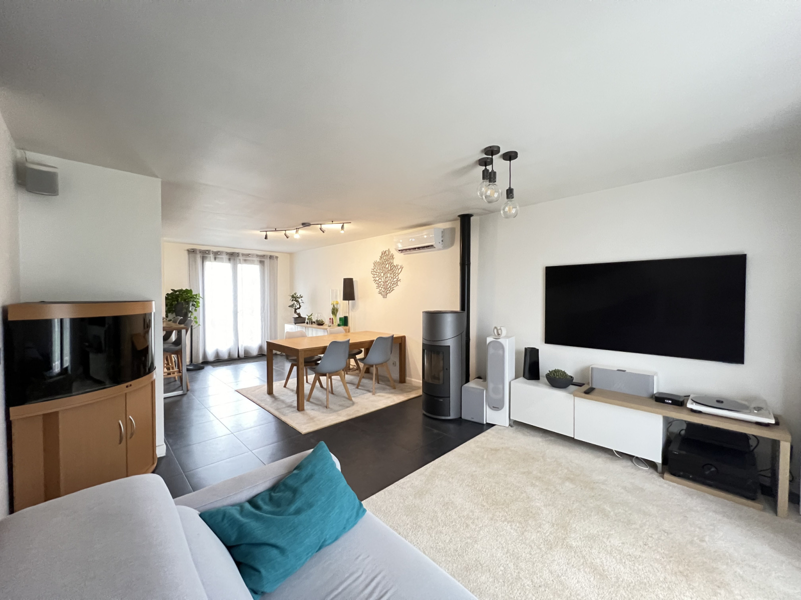 Cette maison vous séduira par ses nombreux atouts comme un poêle à granules, une pompe à chaleur air/air (clim), des panneaux photovoltaiques ainsi que des vélux avec volets roulants motorisés et une décoration intérieure cosy.