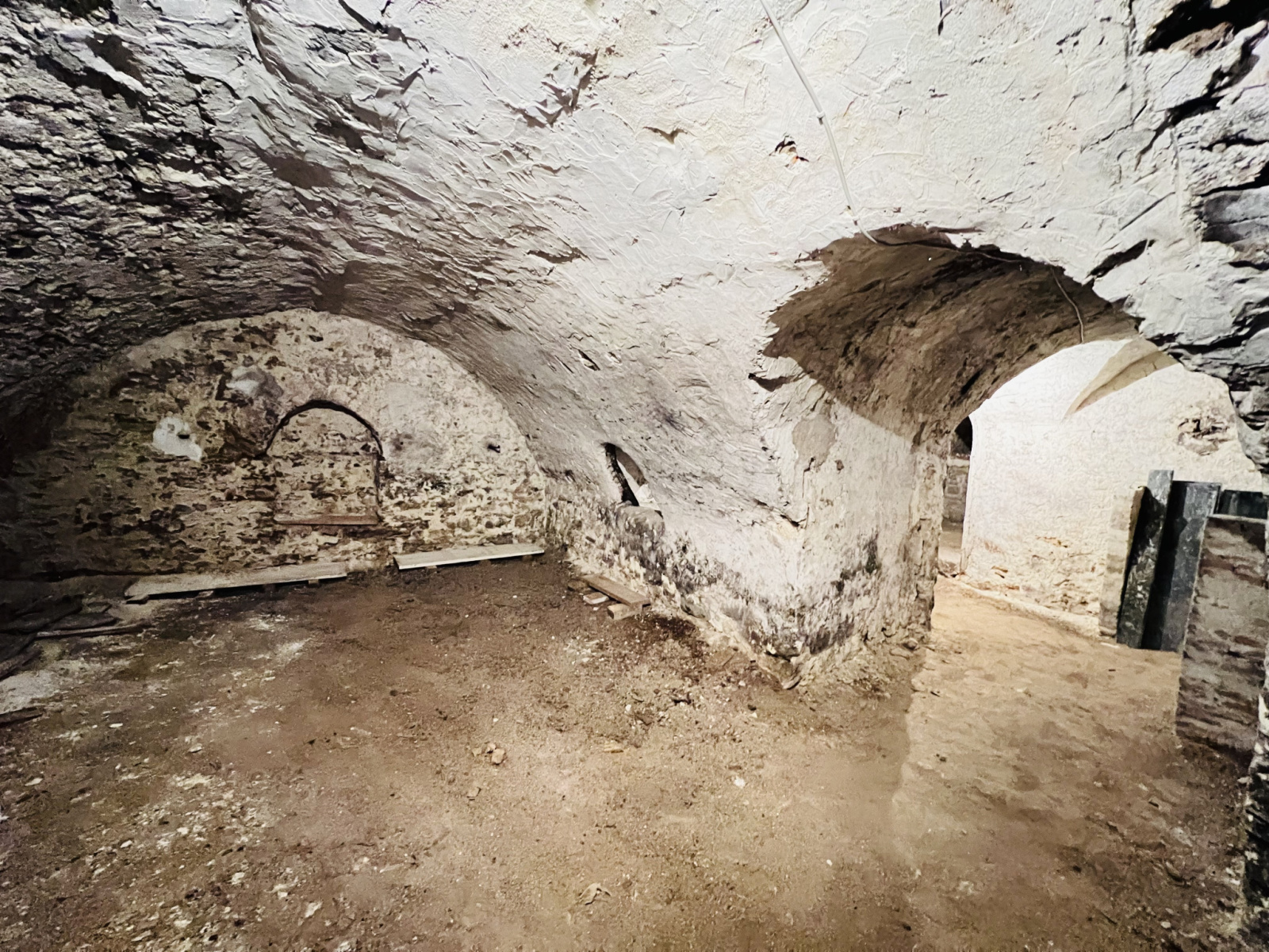 Un hall d'entrée, une buanderie et un accès à une cave voûtée exceptionnelle d'environ 50 m² au sol, offrant plusieurs espaces pour le stockage ou des projets personnels.