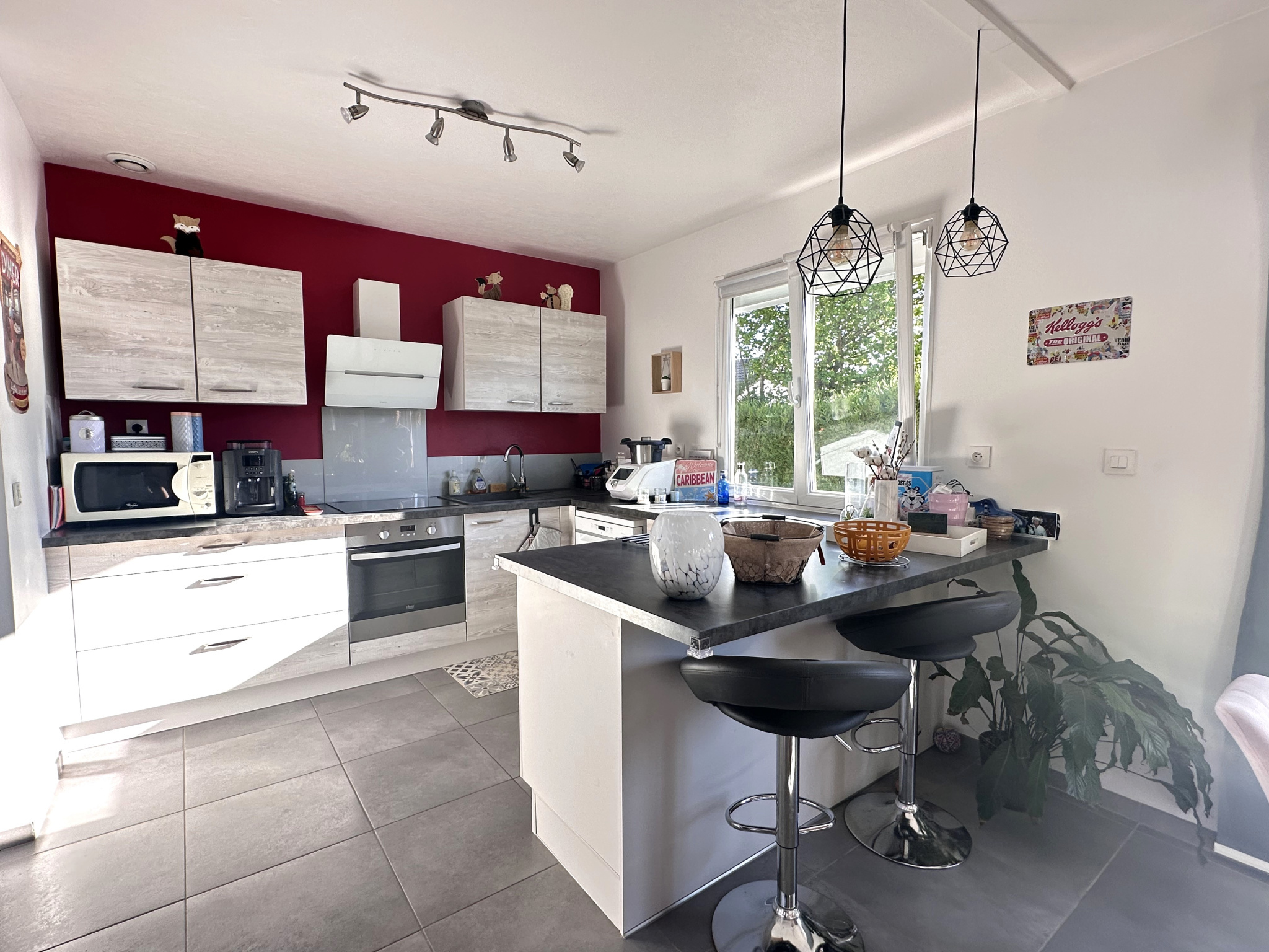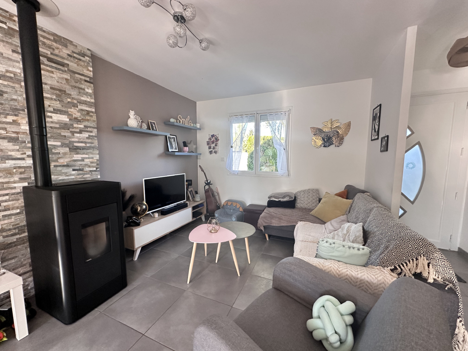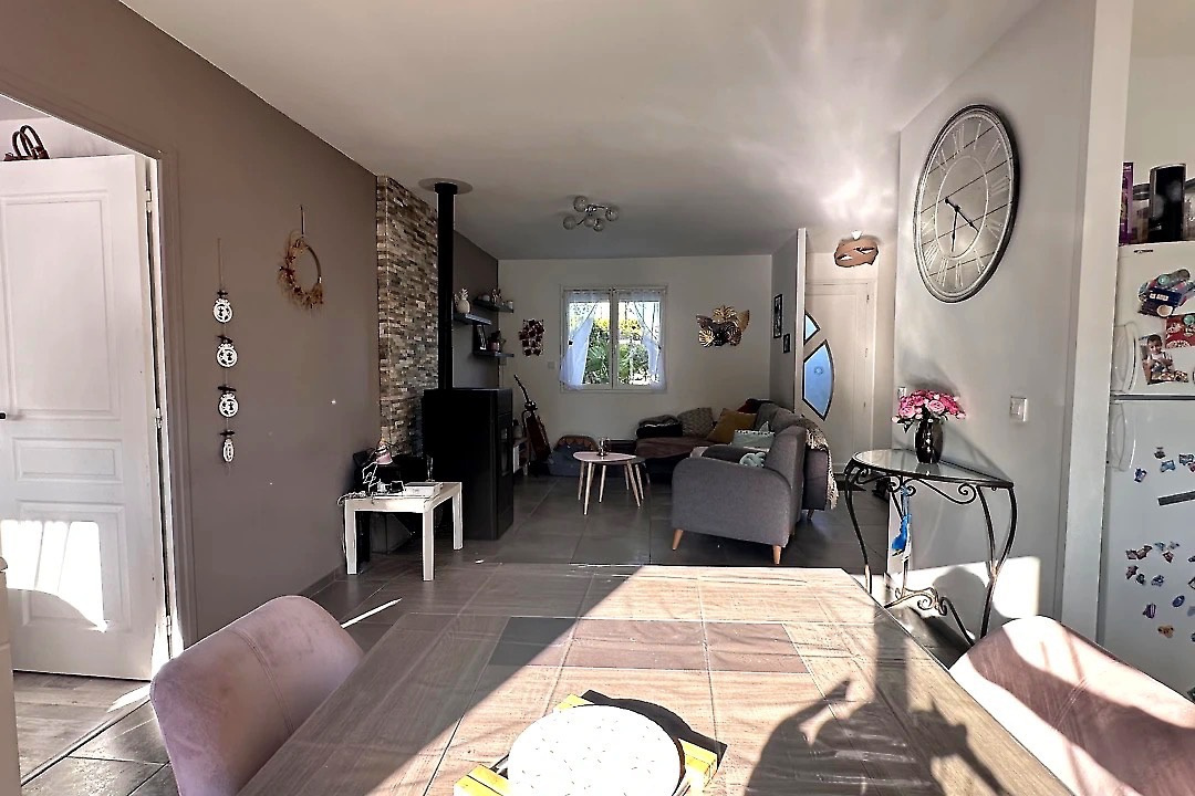 - Un salon/séjour lumineux de 25 m² avec cuisine ouverte et poêle à granulés, pour une ambiance chaleureuse en toute saison