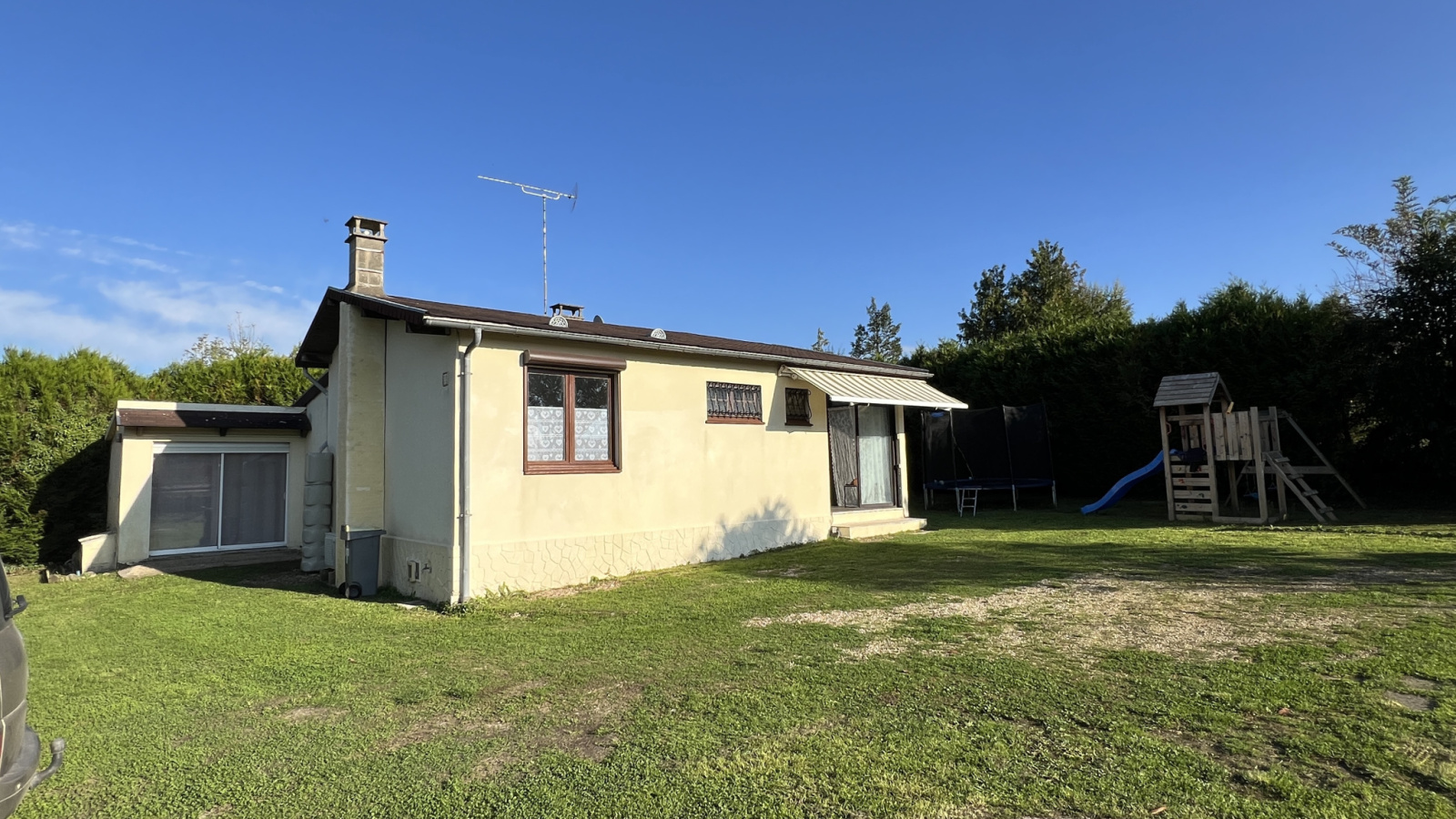 Votre agence CIF Gatinais vous propose proche de La Ferté Alais sur la commune de Vayres sur Essonne - Charmante maison de plain pied sans travaux élevée sur sous sol aménagé comprenant une partie buanderie et une pièce/chambre chauffée avec fenêtre.