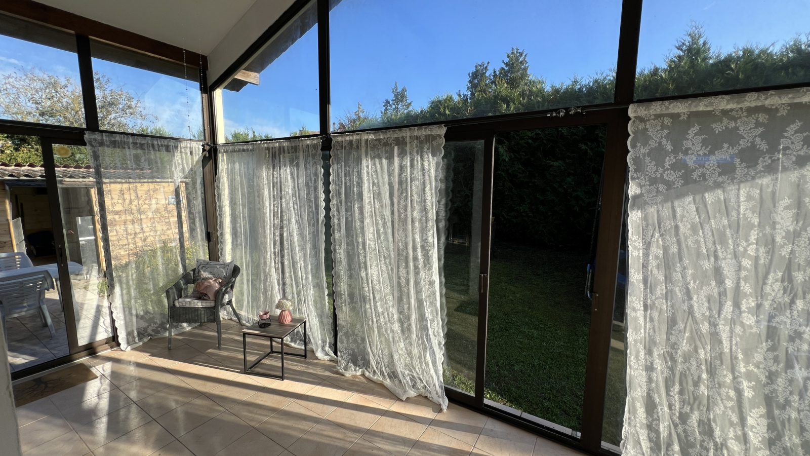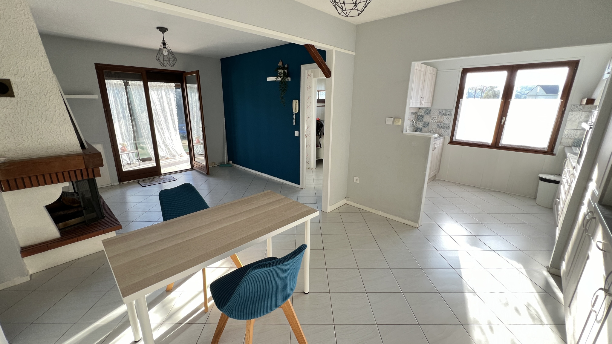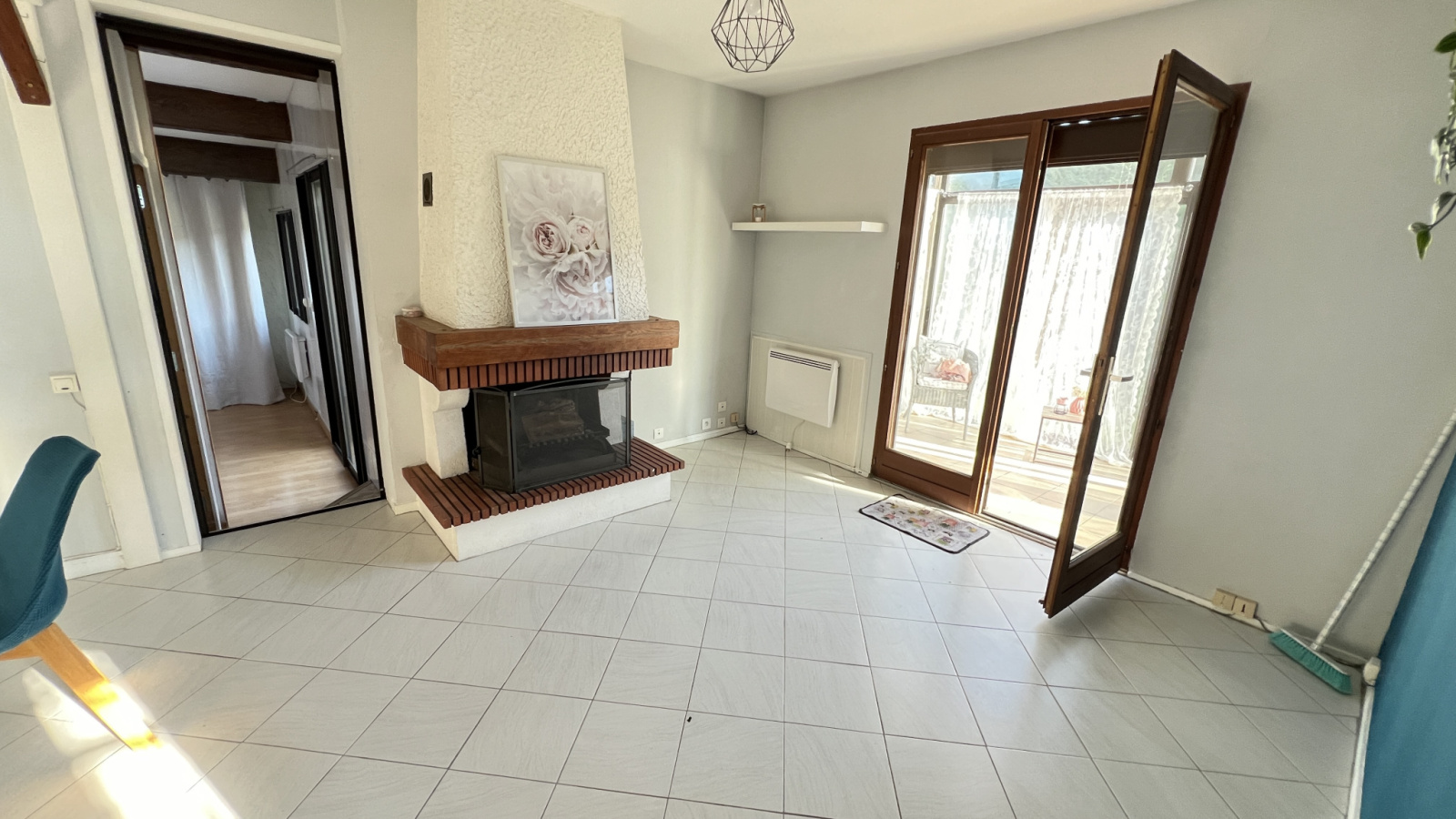 Au rdc vous disposerez d'une véranda, une entrée, une cuisine aménagée et équipée ouverte sur salon/séjour avec cheminée, deux chambres, une salle de bains et un wc séparé.