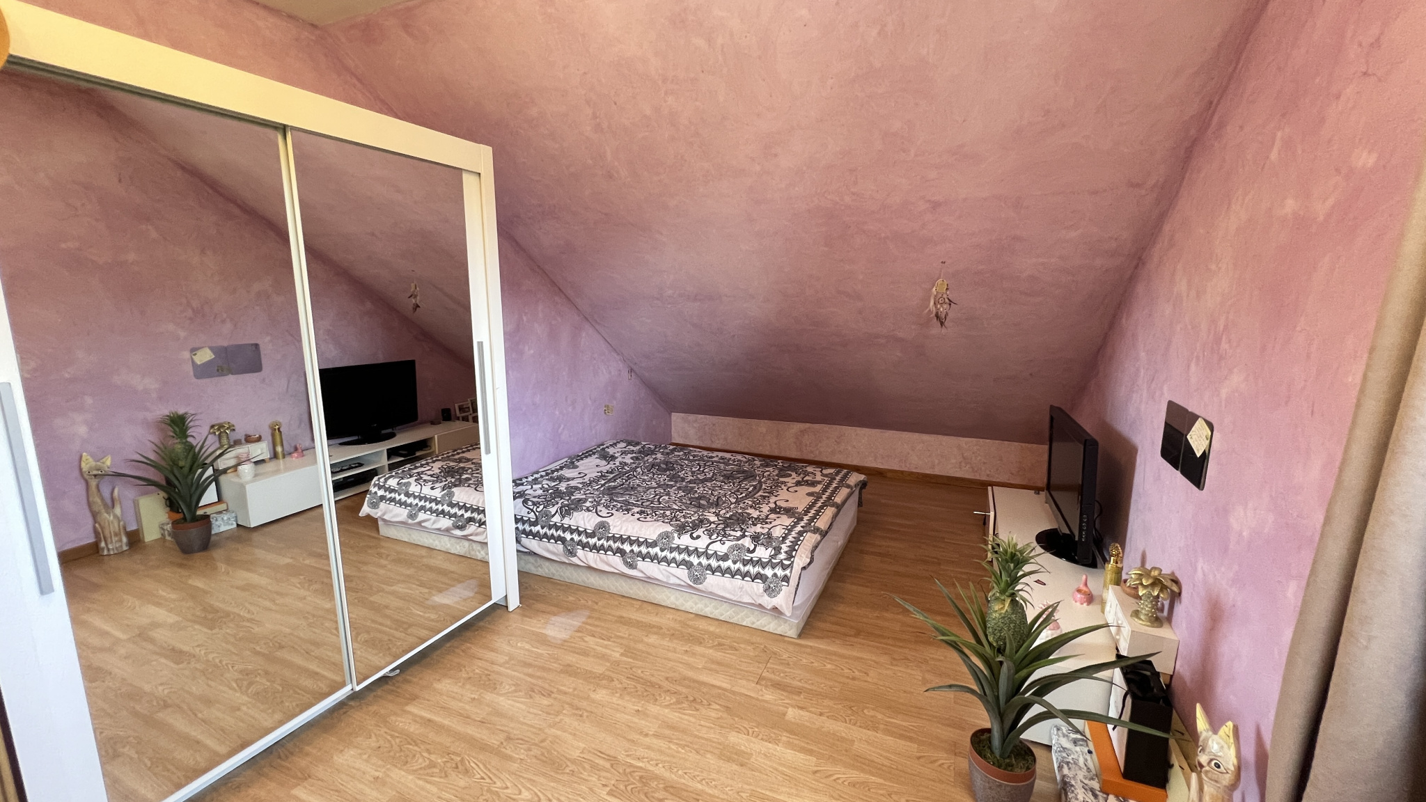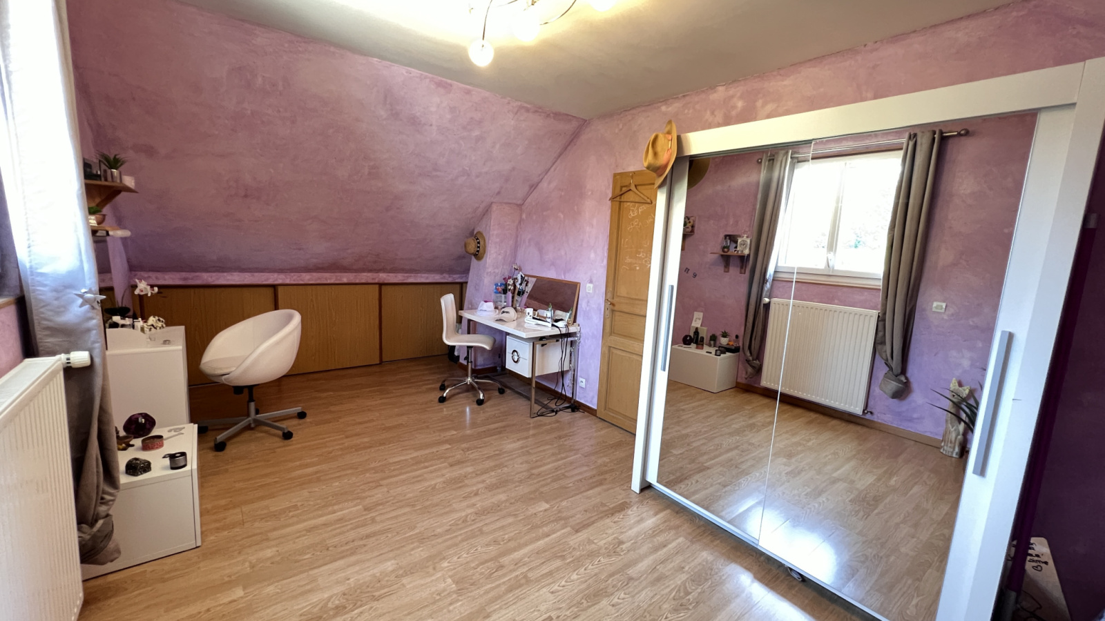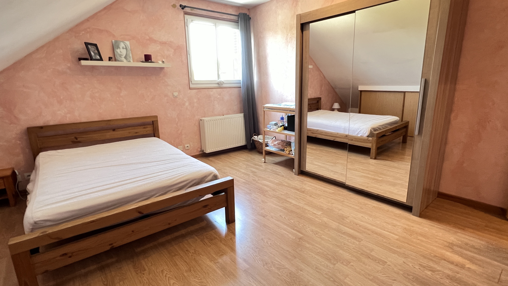 A l'étage, palier desservant deux grandes chambres et une salle d'eau avec wc.