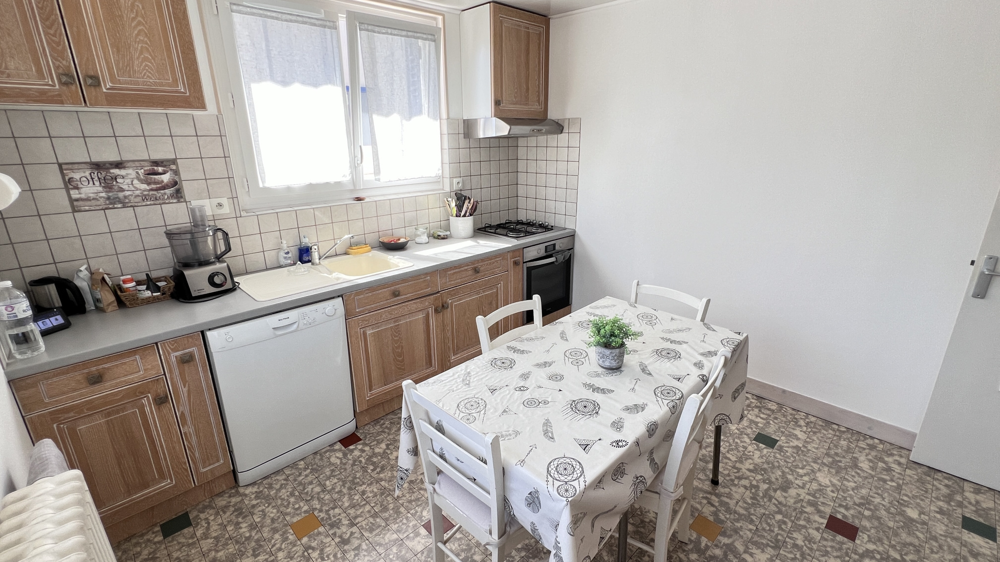 Au Rdc, entrée, cuisine aménagée et équipée, salon, deux chambres, salle d'eau et wc séparé.