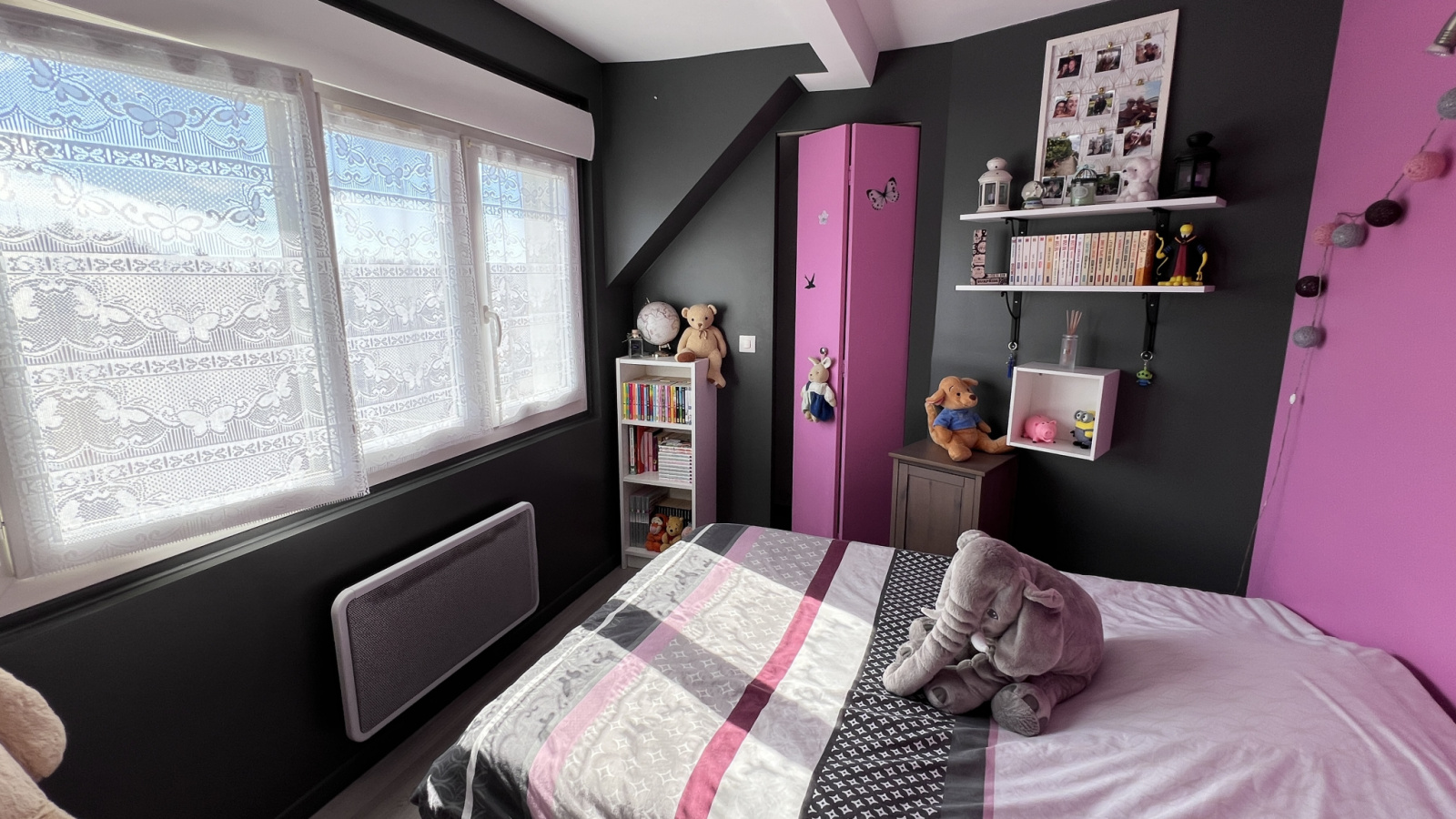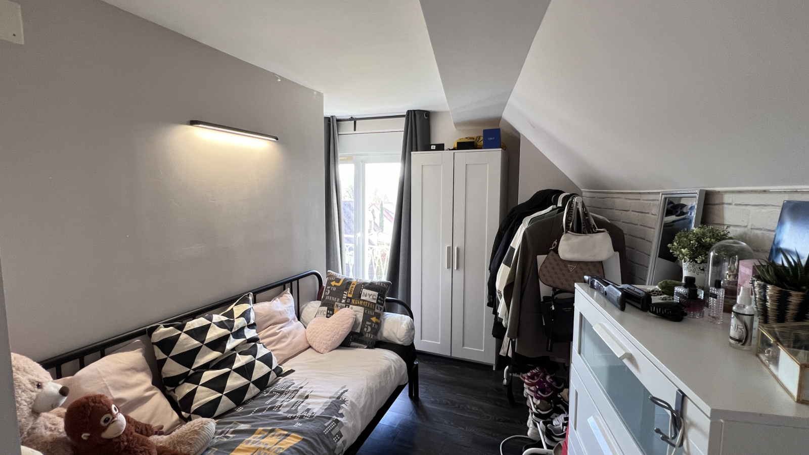 Sous combles, un coin mezzanine/bureau et deux chambres de près de 10m2.